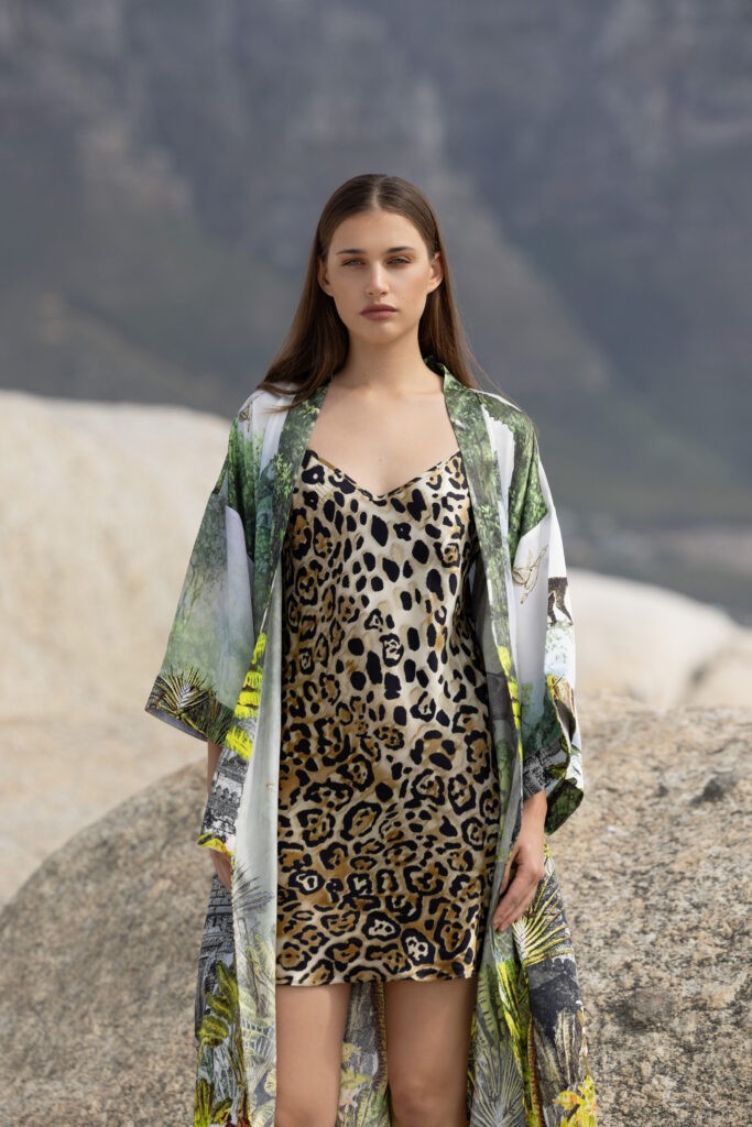 For your next trip to the holiday resort, be sure to take the SAFARI or FLAMINGO Silk Kaftan with you. Designed to be worn open as a cape or tied at the waist with the belt as a kimono, it offers a luxurious addition to your destination wardrobe.