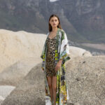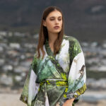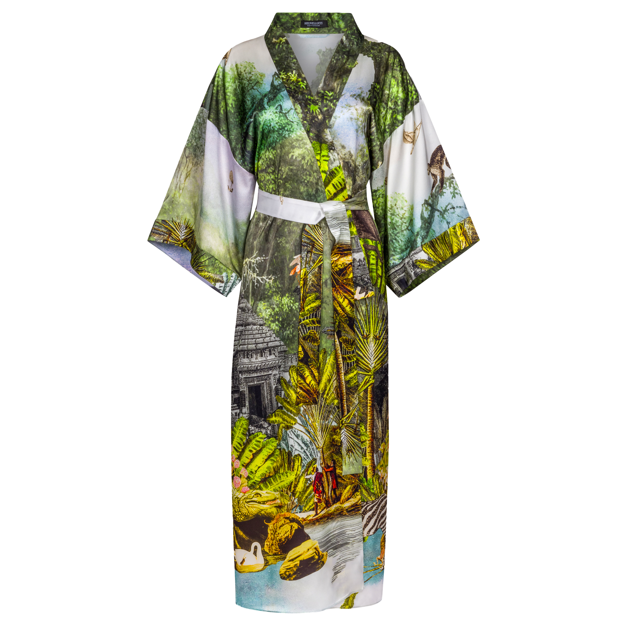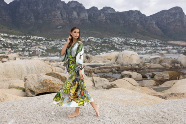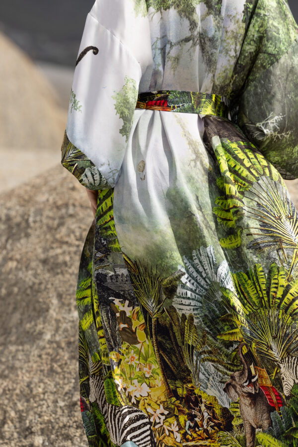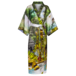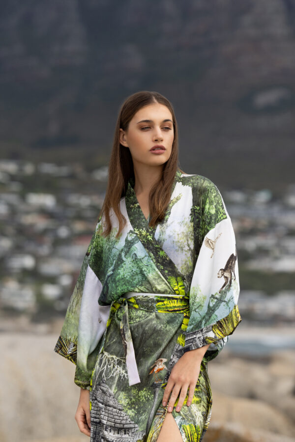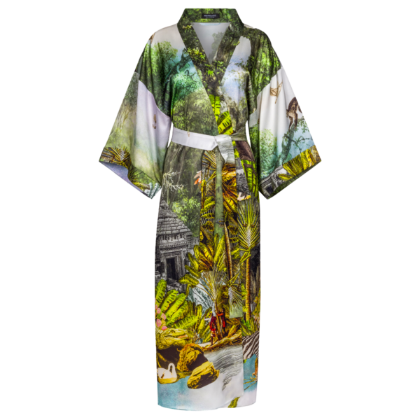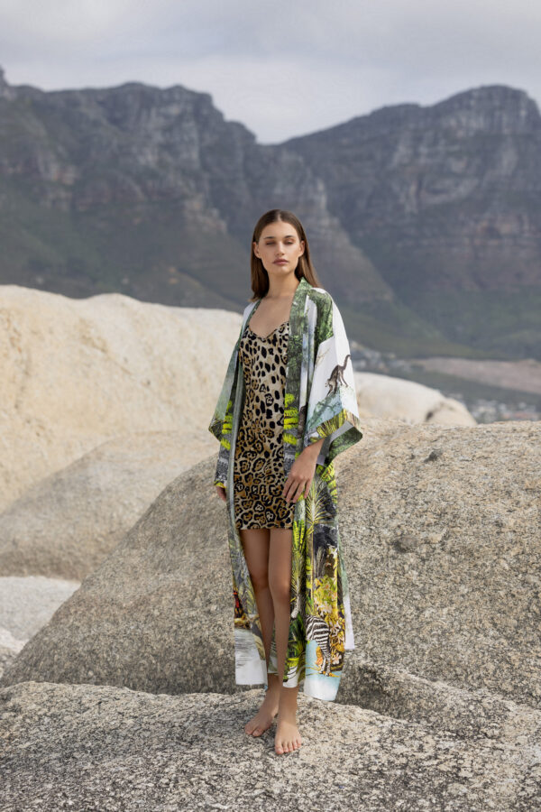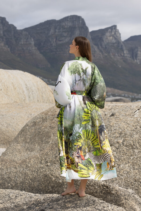 Green Safari-Print Silk Robe with silk garment bag